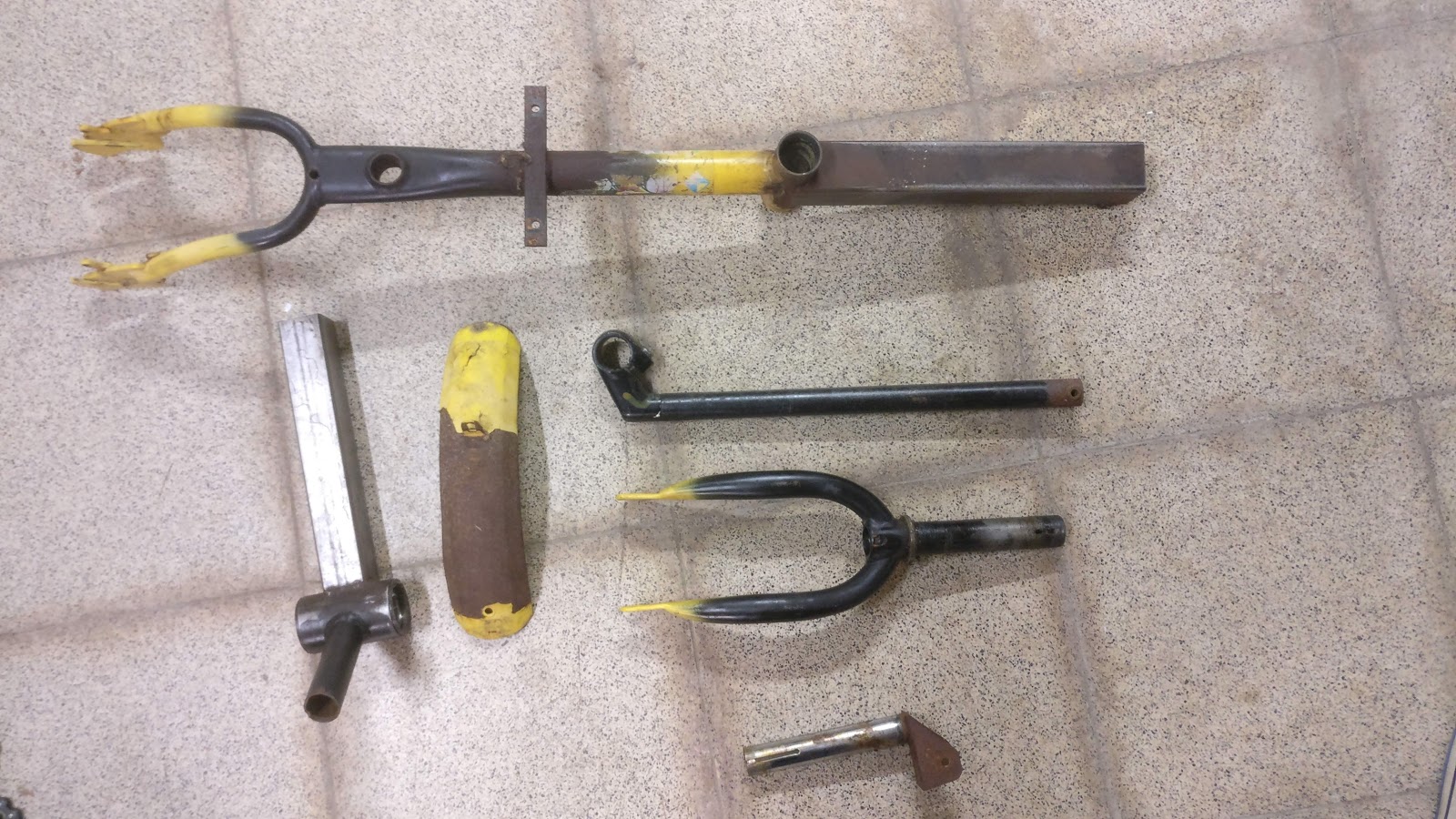 Nu komt mijn werk terug als we deze fiets niet volledig te loor willen laten gaan moet er iets gedaan worden aan de roest om te voorkomen dat ze verder roesten. Daarom deze avond maar de voorbereidingen genomen. De volledige fiets uit elkaar gevezen om die daarna te kunnen zandstralen en terug te spuiten met beschermende lak laag.